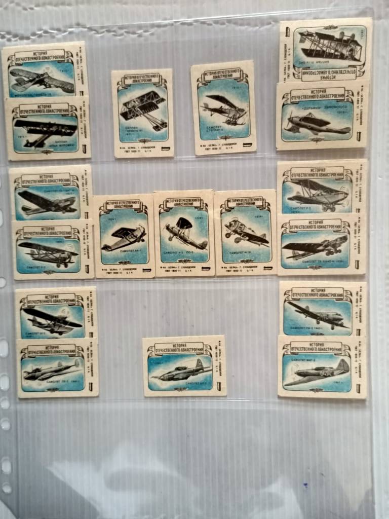 - This set focuses on aviation history, likely from a Russian perspective, given the Cyrillic text.