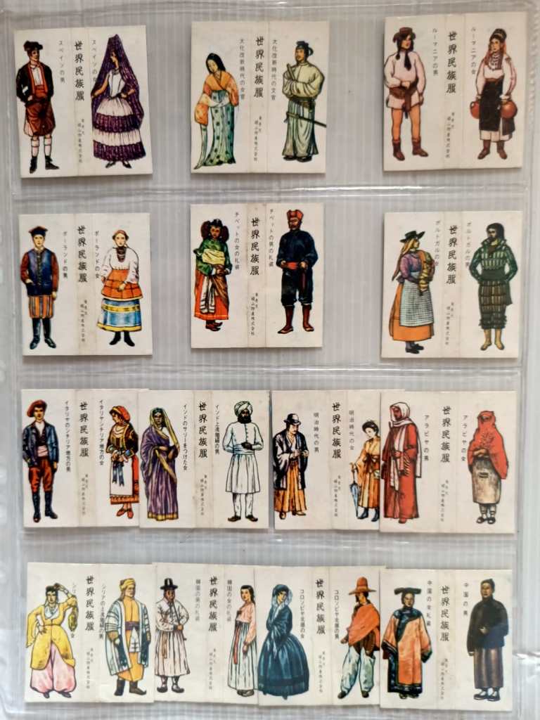 - Labels show traditional costumes from different countries, with Japanese text suggesting these were made for the Japanese market.