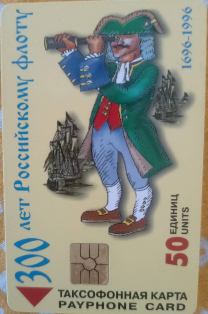 This is a Russian payphone card issued to commemorate the 300th anniversary of the Russian Navy (1696-1996).