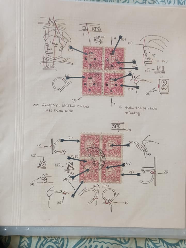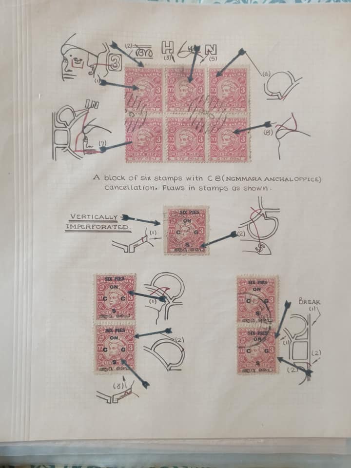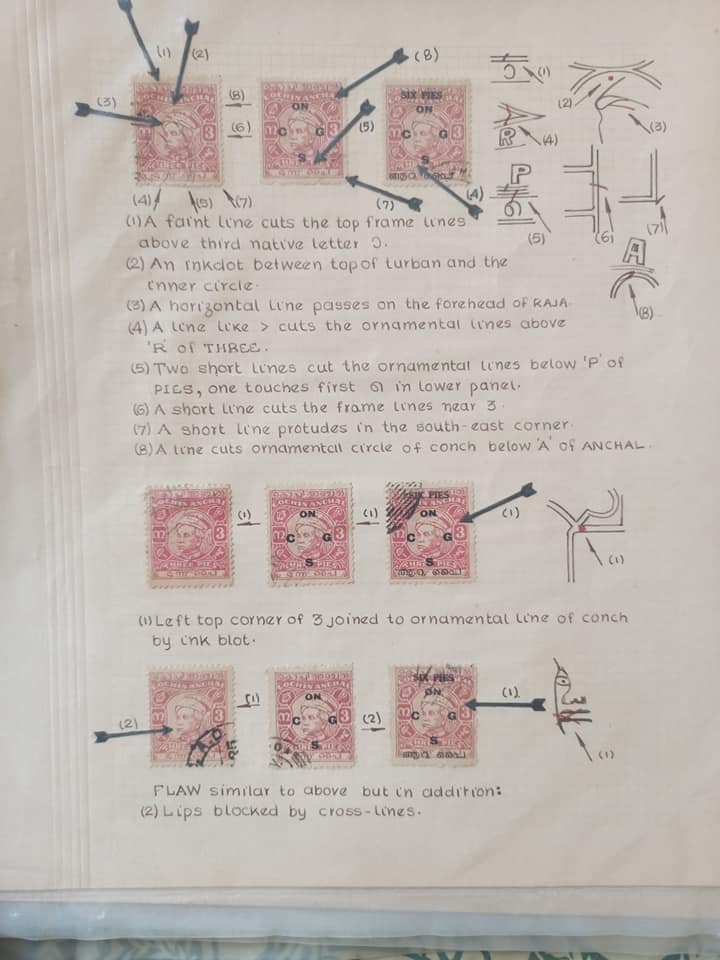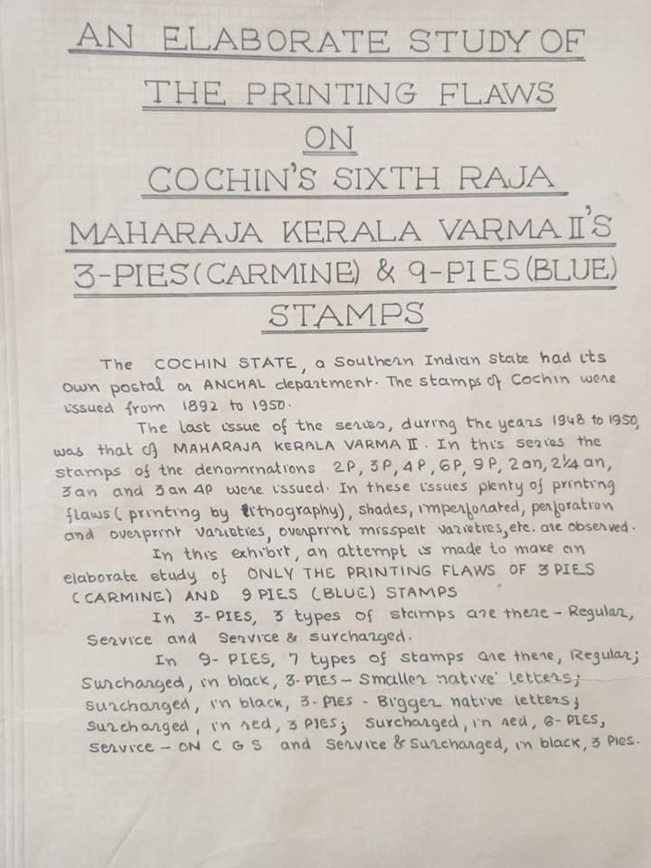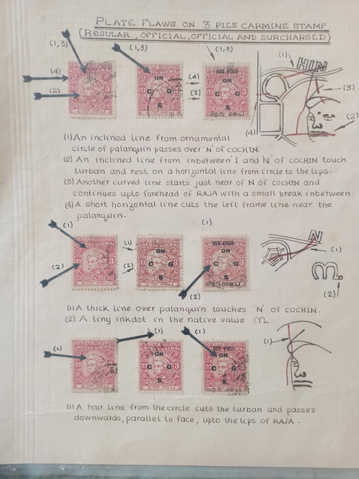 An elaborate study of the printing flaws found on the 3-Pies Carmine & 9-Pies Blue stamps of Maharaja Kerala Varma II from Cochin State, a former princely state in India. These stamps were issued between 1892 and 1950, with the last series featuring Maharaja Kerala Varma II in the years 1948-1950.