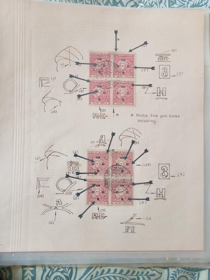It highlights plate flaws found in regular, official, and surcharged versions.