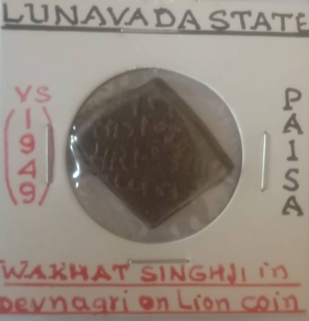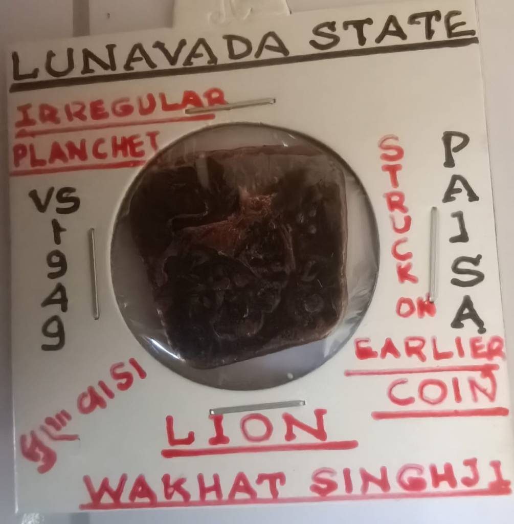 Lunavada State – Lion Coin (VS 1949 / 1892 AD)