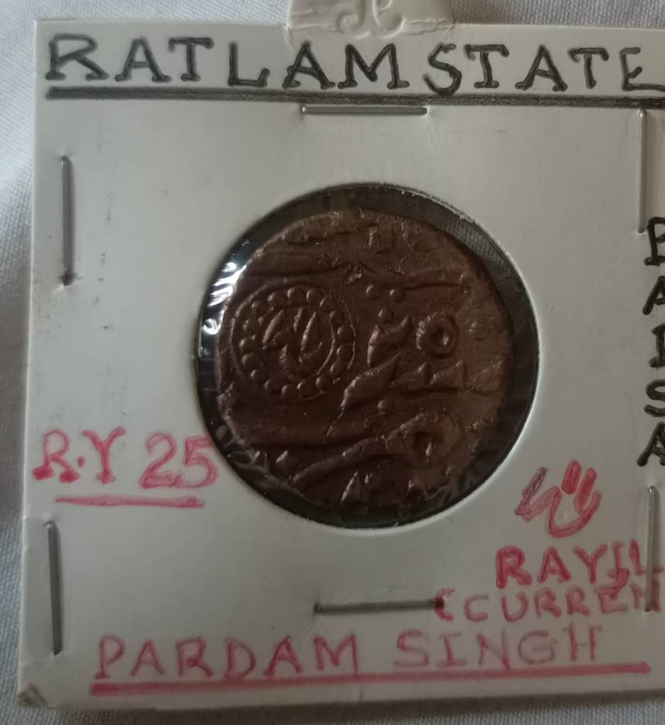 - “Rayil Currency” (Railway Currency?) under PARDAM SINGH and R.Y. 25: Likely a local fiscal token used for limited trade or rail-related payments within the Ratlam region.