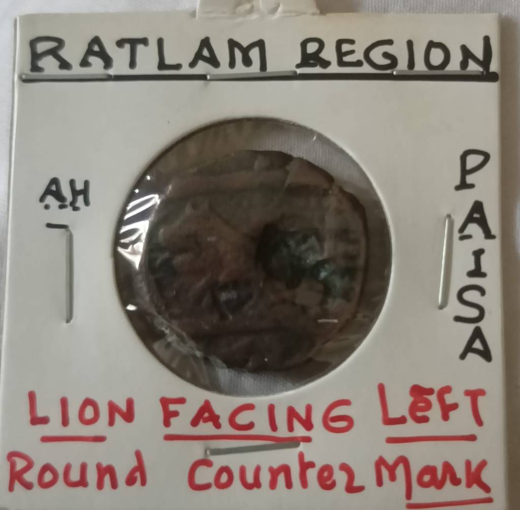 - “Lion facing left” coin with round countermark: This is notable. Lion imagery often symbolized power or British influence in some princely issues.