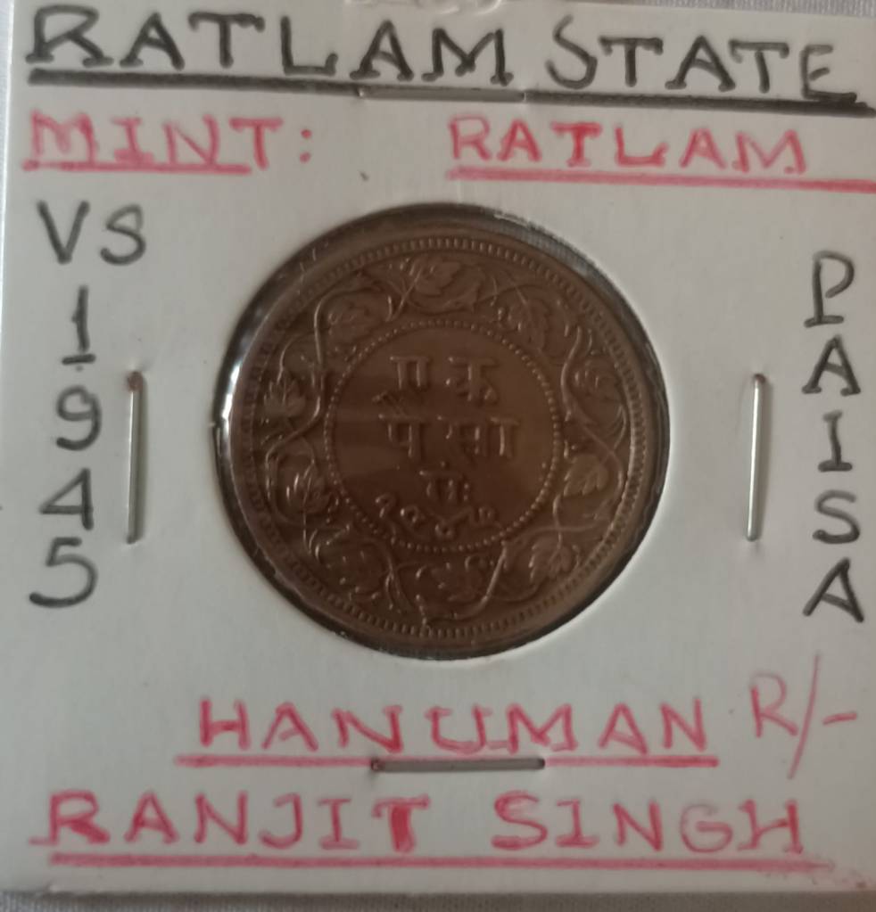 🪙 2. Ratlam State Paisa – Ruler: Ranjit Singh (VS 1945–47)