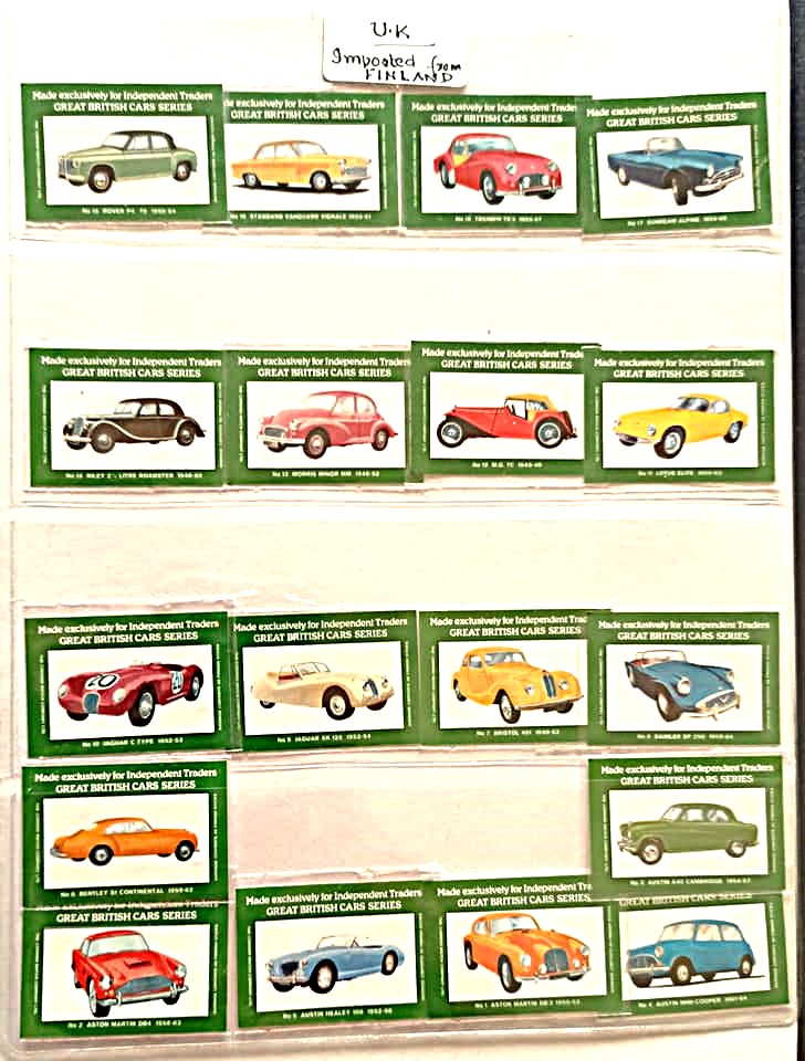 Here’s a quirky little gem from our collection – the “Great British Cars Series” matchbox labels, made exclusively for Independent Traders. Though designed in the U.K., these beauties were actually printed in Finland and imported – a perfect example of how even humble matchbox labels carried stories across borders.