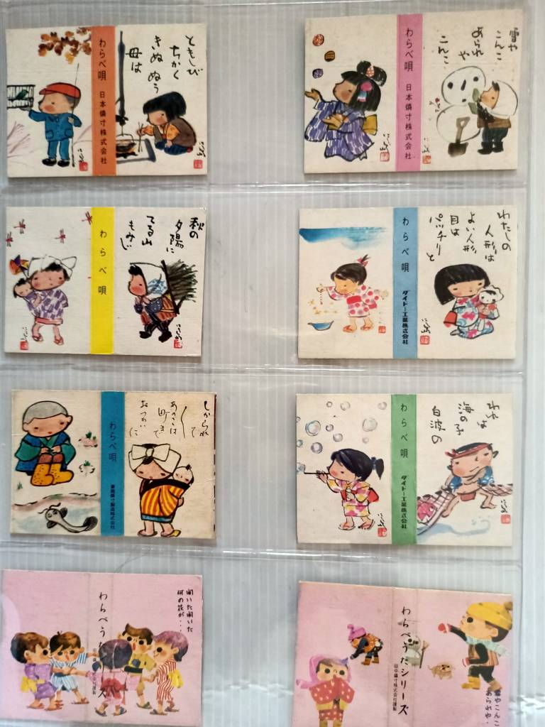 • “Warabe Uta” literally means children’s traditional songs or nursery ditties. These were printed with sweet illustrations of kids at play — jumping rope, catching fireflies, festival games, etc.